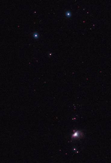 Orion-Nebel wird hier schön strukturiert abgebildet - eine Folge der beiden